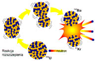 Trzeba tu zacząć od wyjaśnienia, na czym polega reakcja rozszczepiania jądra uranu. Należy pamiętać, że izotopy uranu różnie się zachowują pod wpływem promieniowania neutronowego. Okazało się, że spośród naturalnych izotopów najbardziej podatny na tę reakcję jest uran-235. Jądro uranu-235 po otrzymaniu dodatkowego neutronu staje się niestabilne. Wynika to zarówno z nadmiaru energii wniesionej przez „bombardujący" go neutron, jak i z niekorzystnego stosunku neutronów do protonów w jądrze. Po to, aby uzyskać stan równowagi energetycznej, jądro rozpada się tworząc mniejsze fragmenty, które są jądrami innych pierwiastków o dość przypadkowym składzie.
