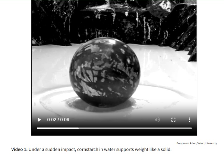 - de:Dortmunder Datenbank; en:Dortmund Data Bank Aby otrzymać alkohol etylowy 100% trzeba zastosować procedury chemiczne (lub fizyczne) bardziej skomplikowane niż zwykła destylacja (potocznie: "pędzenie bimbru"). Podobnie z masłem: aby usunąć całkowicie wodę, trzeba poddać masło "oczyszczeniu", czyli rektyfikacji. Takie masło nazywamy też "klarowanym". Nadaje się ono szczególnie do smażenia: w czasie przygotowania jajecznicy na maśle, to nie tłuszcz "przyszcze", ale wrze woda zawarta w maśle. Reasumując, dlaczego masło zawiera (prawie) dokładnie 82% tłuszczu - nie wiemy. Podziękowania za zwrócenie uwagi (1977 r.) na nadzwyczajność składu masła - dla dr J. Kukiełki, wykładowczyni przedmiotu "Towaroznawstwo" na kierunku Ekonomika Handlu Zagranicznego Uniwersytetu Gdańskiego w Sopocie. Szara maść O ile poprzednia rolka wzięła się z rozważań ekonomicznych, to ta bierze się z "moich" studiów farmaceutycznych. Kiedy pierwszy raz spotkałem się z wytwarzaniem maści, uświadomono mi, że są one specjalnymi mieszaninami, w których może być potrzebna zarówno woda (rozpuszczalnik niektórych leków, np. witaminy C) jak i tłuszcz (rozpuszczalnik innych substancji, np. witaminy D). Większość maści zawiera jako "podkład" (po łacinie vehiculum) jakiś tłuszcz, np. wazelinę. Słowem kluczowym w przygotowaniu maści jest ucieranie, za pomocą tłuczka, w moździerzu. Nie tylko maści, ale przede wszystkim kremy są emulsjami. I tak mamy krey nawilżajace (zapewne z większą ilością fazy "wodnej") i natłuszczające. Margaryny, wytarzane z różnych tłuszczów zawierają również "emulgatory", czyli substancje ułatwiające tworzenie się emulsji. I jak pokazuję w rolce, emulsjami są również różnego rodzaju farby - lateksowe, akrylowe itp. Jak podaje jeden z producentów: określenie „farby wodorozcieńczalne” stosuje się do opisania zawiesiny cząstek stałych, czyli pigmentów i innych wypełniaczy w spoiwie i rozpuszczalniku." Moi przyjeciele (i przyjaciółki) z Wydziału Farmacji mieli zwyczaj śpiewać przy ognisku: "Szara maść, szara maść. Równo kłaść, równo kłaść." Kręcić w prawą stronę? Wszystkie znajome gospodynie domowe twierdzą, że ciasto trzeba kręcić w jedną stronę. Włoszki mówią wręcz, że nalezy kręcić wyłącznie w prawą stronę. Zabobon? Niedawne (2018) badania fizyków pokazują, że gospodynie mogą mieć rację. Nie badano, co prawda, ciasta skłądającego się z mąki, cukru jajek, masła i mleka, ale modelowe studium mieszaniny mąki kukurydzianej (czyli skrobii) dało tak ciekawe rezulaty, że zostały one wyróżnione w internetowym przeglądzie osiągnięć fizyki "Physics Today", fot. 3. Pytaniem, jakie postawili sobie badaczy było, dlaczego mieszanina skrobii i wody ma dziwne własnoście mechaniczne. Jest to ciecz, ale przy szybkich odkształceniach zachowuje się jak elastyczne ciało stałe. Dzieci na pokazach fizycznych wymieniają jednym tchem: "ciecz nie-niutonowska", Dużo to nam nie mówi. Na stronach "Fizyki zabawek" pokazujemy tego rodzaju materiał pod nazwą "elastyczna plastelina". Odkszałcana powoli "płynie", jak dobrze rozgryziona guma do żucia. Spuszczona w formie kulki odbija się od podłogi jak piłeczka kauczukowa, uderzona młotkiem (podobno) się rozpryszkuja na kawałki jak szkło. Wyjaśnieniem (pozornym) jest niezwykły, a odkryty przypadkowo skład chemiczny - polimeru z atomami krzemu zamiast węgla (AI: polydimethylsiloxane (PDMS) and boric acid). Ale również krochmal zachowuje się podobnie. Pokazuje to film ze stony opisującej [1] wcześniejszy (2013) artykuł [2] amerykańskich fizyków: ciężka kulka obija się od powierzchni "cieczy" Ciągle jednak jesteśmy daleko od wyjaśnienia, czy należy kręcić w jedną stronę, i od komentarza "Tylko ręka boli". Kolejnego kroku w tym kierunku dokonała grupa fizyków z USA i Wielkiej Brytanii [3]: badali mieszaninę mikro-koloidalnej krzemionki (SiO2) i lateksu - jakby mąki, jajek i margaryny. "We do so in two canonical colloidal systems: chargestabilized silica (Seikisui Chemical) with diameter 2:0 µm suspended in a mixture of glycerol and water (viscosity η0 = 0:98 Pa.s at 20◦C) at volume fraction φ = 0:49, and polymethylmethacrylate (PMMA) particles with diameter 1:4 µm sterically stabilized with poly-dimethyldiphenyl siloxane (PDV-2335, Gelest) with chain length ≈ 50 nm [27] suspended in PDV-2331 (Gelest, viscosity Celem było stwierdzenie, jaki jest powód "twardnięcia" takiej mieszaniny w trakcie mieszania. Jakby dla sprawdzenia przepisu gospodyń domowych, co 10 sekund zmieniano kierunek mieszania. Możliwe dwa wyjaśnienia to siły hydrodynamiczne lub opór spowodowany stykaniem się molekuł. Nagły spadek sił oporu mieszaniny po zmianie kierunku mieszania wskazał jasno na siły kontaktowe. Czy to już przepis gospodyń domowych? Jeszcze nie, ale rysunek Chrisa Nessa z Uniwersytetu w Edynburgu w artykule [4] opisującym to doświadczenie sugeruje rozciąganie się drobin w czasie kręcenia w jednym kierunku. Chris Ness/University of Edinburgh