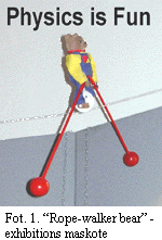 "Physics is Fun" was the motto of three exhibitions presented by Institute of Physics Pomeranian Pedagogical Academy (IP PPA) in Słupsk during XXXVII Congress of Polish Physicists in Gdańsk. In five halls of Division of Mathematics and Physics at Gdańsk University in 15-18 of September 2003: "Physics and Toys", "204 years of Volta's pile" and "On the Track to Modern Physics" were presented. All the project was animated by prof. Grzegorz Karwasz. Workers and students of IP PPA were introducing visitors in the world of phenomena hiding behind the toys and demonstrations. Moreover "rope-walker bear" - the mascot of exhibitions (see. photo 1), was inviting visitors in the front of building.