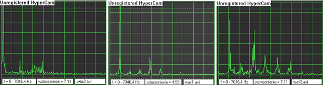 Rys. 6. Przy przesuwaniu palca po krawędzi kieliszka, pojawiają się dudnienia - narastanie i słabnięcie dźwięku. |