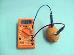 Dwie blaszki: cynkową i miedzianą wbijamy w cytrynę i bateria gotowa. Można nią zasilać zegarek elektroniczny. Dwa duże kartofle i możnaby zasilać "komórkę"