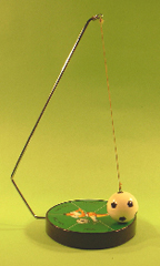 upuszczamy zawieszoną centralnie nad podstawą zabawki piłeczkę, która w sobie