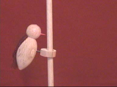 Po odchyleniu dzięcioła, sprężyna rozciąga się a po jej puszczeniu - wprawia dzięcioła w ruch wahadłowy. W pewnym momencie obręcz ustawia się równolegle do tyczki. W tym momencie dzięcioł zsuwa się niżej, kontynuując jednocześnie swój ruch wahadłowy. Bezwładność dzięcioła powoduje wygięcie się sprężyny w przeciwną stronę i cały cykl się powtarza aż do momentu gdy dzięcioł osiągnie podstawę tyczki.