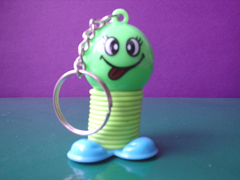 Spróbujmy przywiesić mu jeden ciężarek. Sprężynka się wydłuża - spróbuj odczytać o ile centymetrów (zauważ, że położenie nierozciągniętej sprężynki nie jest na początki linijki).