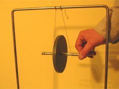 Takie duże yo-yo jest naukowo zwane "wahadłem Maxwella". Jest to duży krążek, na sztywno zamocowany na małej osi. Rozwija się powolutku w dół, po czym samo z powrotem podjeżdża do góry. Prawie bez końca.