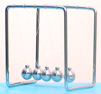 Zabawka to pięć stalowych kulek, każda zawieszona na dwóch żyłkach w ten sposób, że może wahać się tylko w jednym kierunku: tak aby się zderzyć z sąsiednią.
