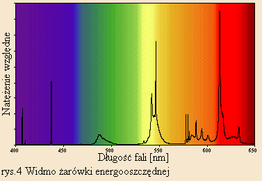 Na pozór białe światło emitowane przez żarówkę z włóknem wolframowym, świetlówkę oraz żarówkę energooszczędną w rzeczywistości powstaje w wyniku złożenia w różnych proporcjach składowych o różnej długości fali.