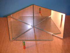 Układ dwóch luster tworzących kąt prosty pozwala na obserwację nie odwróconego obrazu. Spróbuj uczesać się w zmodyfikowanym zwierciadle.