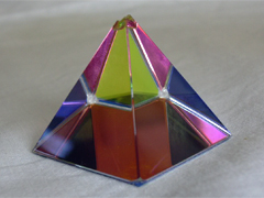 Piramida Swarowskiego działa na podobnej zasadzie, jak sfera: selektywnego, całkowitego wewnętrznego odbicia.