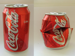 Rozgrzaną mocno (np. na kuchence) puszkę po Coca-Coli, chwytamy przy pomocy kombinerek i szybko wsadzamy, otworem do dołu, do pojemnika z zimną wodą. W efekcie otrzymamy mocno zdeformowaną i nieco spłaszczoną puszkę.