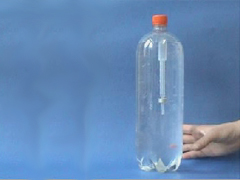 Ściśnij butelkę i zobacz co się stanie z pływającą wewnątrz niej pipetą. Tonie,