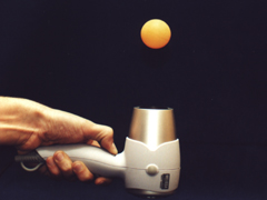Czy na spadochroniarza spadającego swobodnie przez pewien czas w powietrzu działa jakaś siła? Można się o tym przekonać umieszczając lekką piłkę w strumieniu powietrza suszarki ustawionej pionowo.