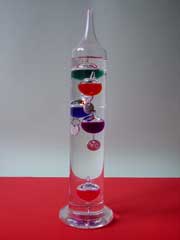 Termometr zbudowany jest ze szklanego cylindra wypełnionego cieczą, której gęstość wzrasta i maleje wraz ze zmianami temperatury. Wewnątrz cylindra znajduje się kilka szklanych pojemników wypełnionych kolorową cieczą. Pojemniki jako całość, z różnymi poziomami cieczy w ich wnętrzu, mają różną średnią gęstość. Podczepione są do nich etykiety, z których możemy odczytać temperaturę.