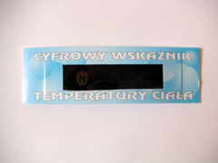 Przyłóż termometr do swojego czoła. Potrzymaj go tam przez kilkanaście sekund i następnie odczytaj temperaturę na pasku. Jeżeli jesteś zdrowy powinny się świecić symbole 36 i 37, w przeciwnym razie... idź do lekarza!